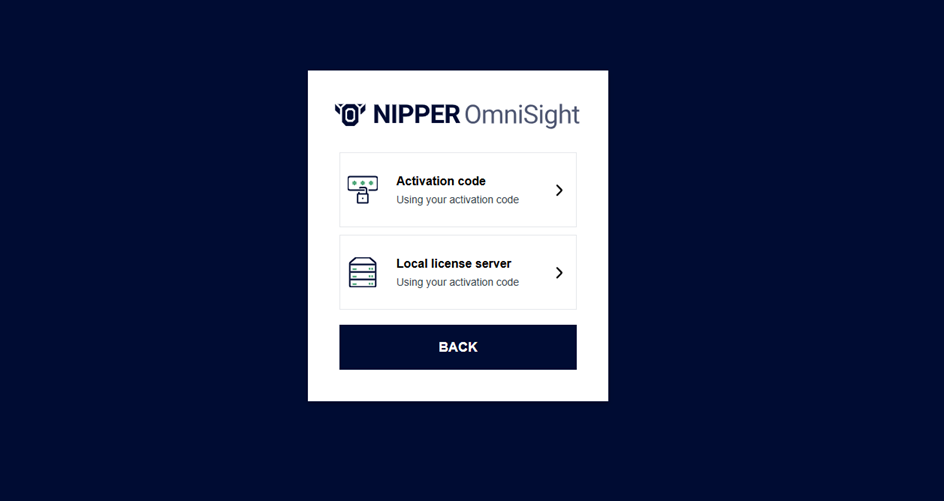 If you are operating in an offline environment, you will not be provided with an Activation Code. Instead, when you receive your OVA, it will contain a local license server that is pre-activated with your entitled licenses. After deploying and starting this local license server within your environment, you should then be able to enter your Activation Code, along with the URL of the local license server, in this screen. Once this information is submitted, OmniSight will validate against the local server and become fully licensed, functioning in the same way as it would with an online activation.