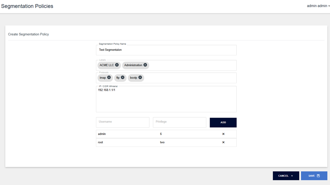 Once all required fields have been completed, you can save the policy to apply your changes, or cancel to discard them and return to the Segmentation Policies page.