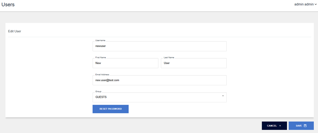 Here you can change the name or email of the user, the group the user belongs to, or allow the user to reset their password or generate a new two-factor authentication code.